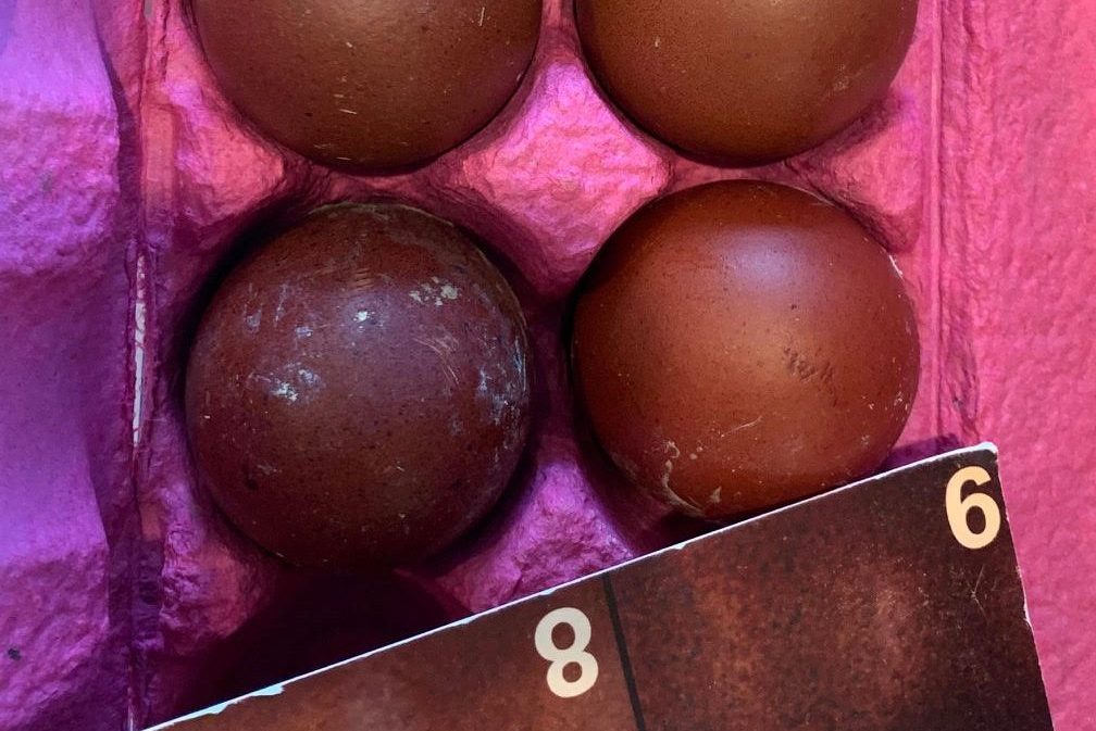 We primarily focus on the Standards of Perfection (SOP) for our Marans; breeding towards the correct features, and body types above all else. Although egg color is not our primary focus in breeding it is still worked on, and we take pride in our eggs color which average a 5-6 on the Marans scale most of the year. We still get a lot of 7’s on the scale, and we have a couple girls who occasionally grace us with 8’s!